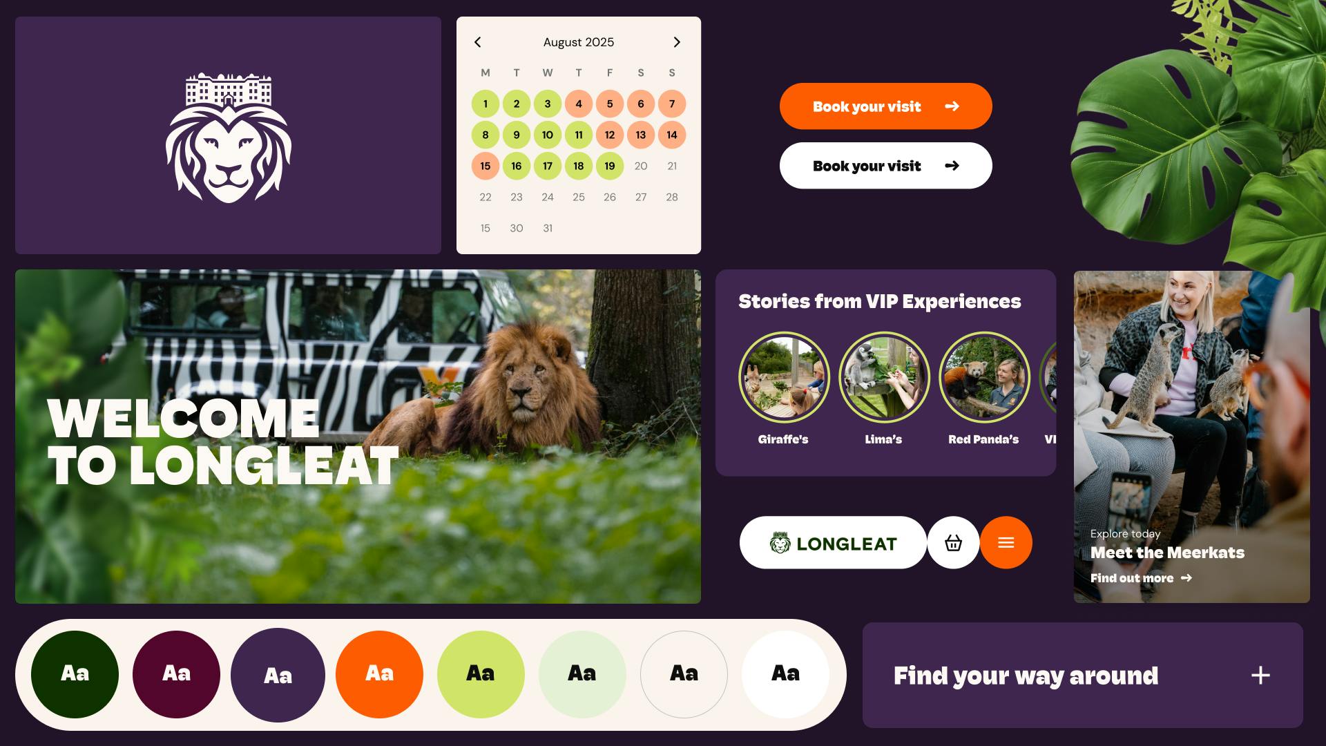 Our first step was to establish some of the fundamental building blocks like colour and font. Our pitch visuals bore an uncanny similarity to a colour palette Longleat themselves were developing in-house, so we were able to get on the same wavelength instantly.